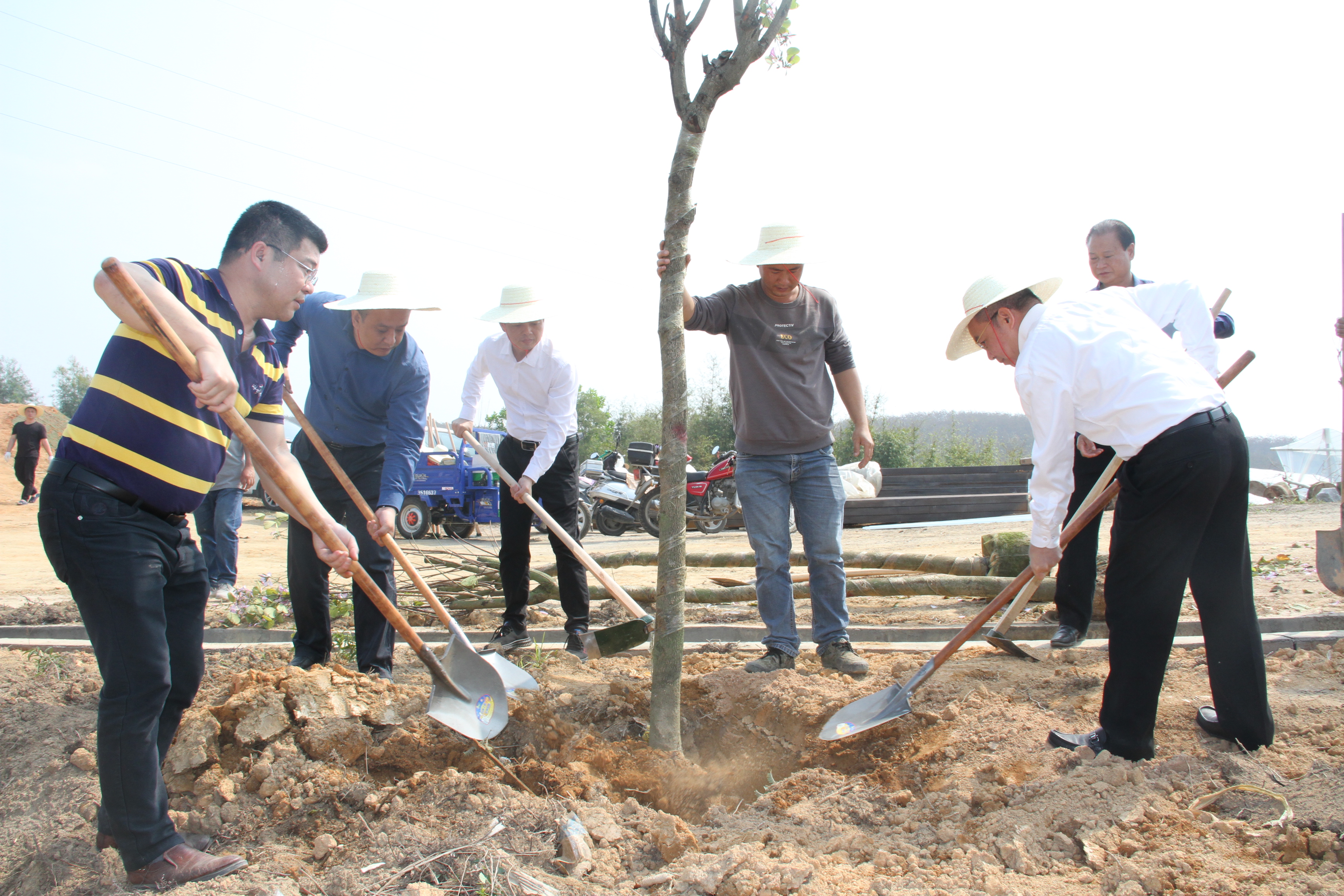 支光南(右一)與大家一起為樹苗培土